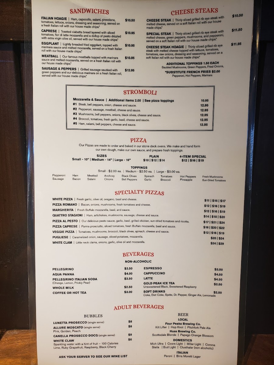 Don’t miss out on the restaurant’s renowned Strombolis, available in a variety of flavors that cater to every palate. Whether you prefer the hearty #1 Stromboli packed with steak and bell peppers or the vegetarian-friendly #4 with broccoli and fresh garlic, each creation is lovingly wrapped and baked to perfection, ensuring a mouthwatering delight for just $12.95.
